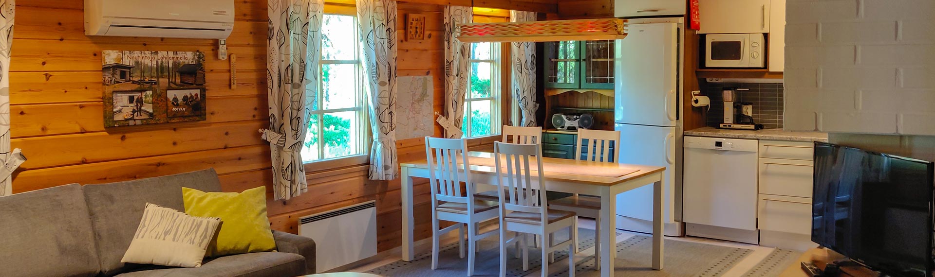 Fünf gemütliche, umfangreich ausgestattete Ferienhäuser in traditionellem skandinavischem Baustil in Kuusamo, direkt am Ufer des Sees Rukajärvi. Die Skiloipen beginnen direkt am Ferienhaus, bis zur nächsten Skipiste sind es lediglich 3,5 km.