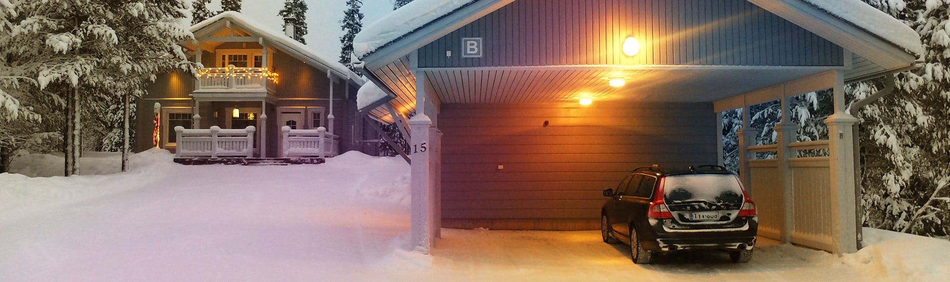 Drei anspruchsvoll gehaltene Ferienwohnungen (je 135 m²) für Selbstversorger direkt am Ufer des Sees Vuosselijärvi im östlichen Teil von Ruka.