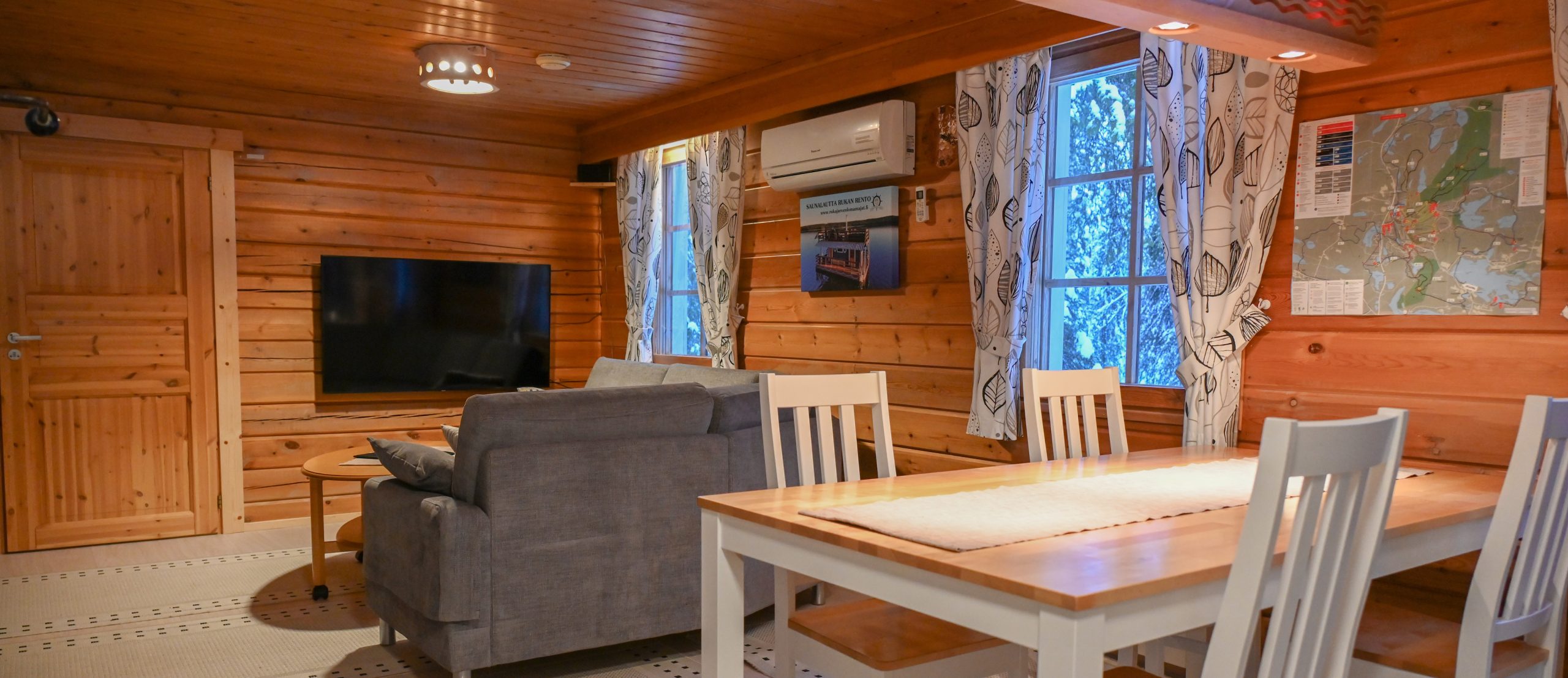 Viisi viihtyisää, tunnelmallista ja hyvin varusteltua hirsimökkiä Kuusamossa, Rukajärven rannalla.