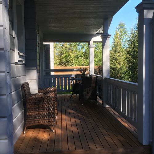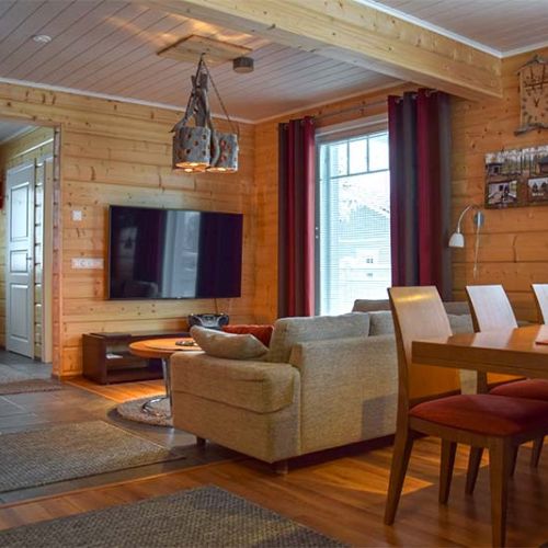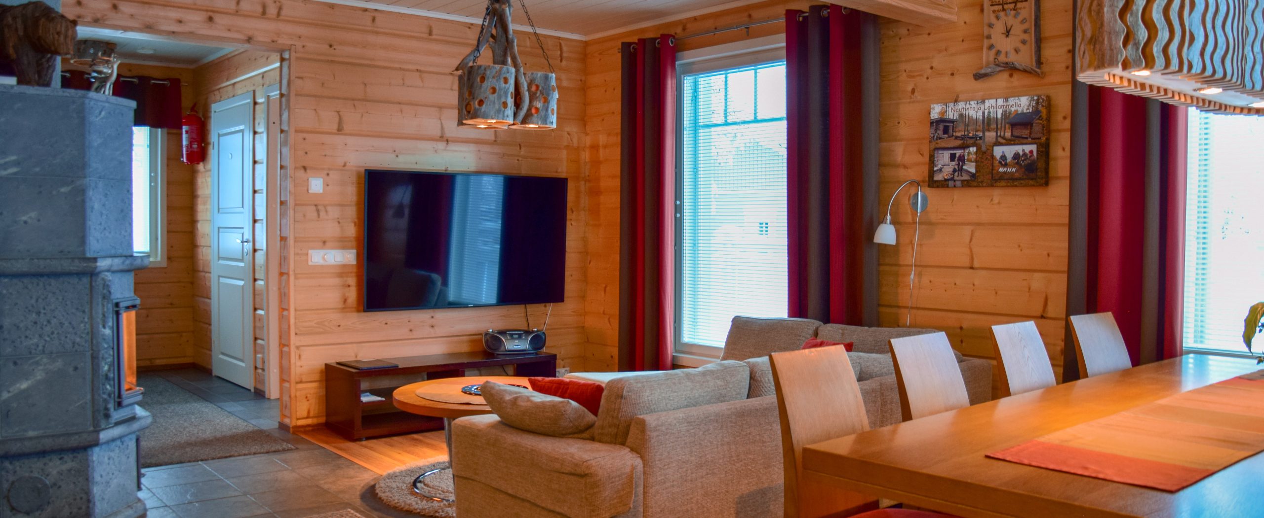 Korkeatasoinen loma-asunto 135 m2 Vuosselijärven rannalla Itä-Rukalla, Kuusamossa. Mökistä pääset suoraan hiihtämään huolletuille laduille. Lähimpään laskettelurinteeseen on matkaa vain kilometri.